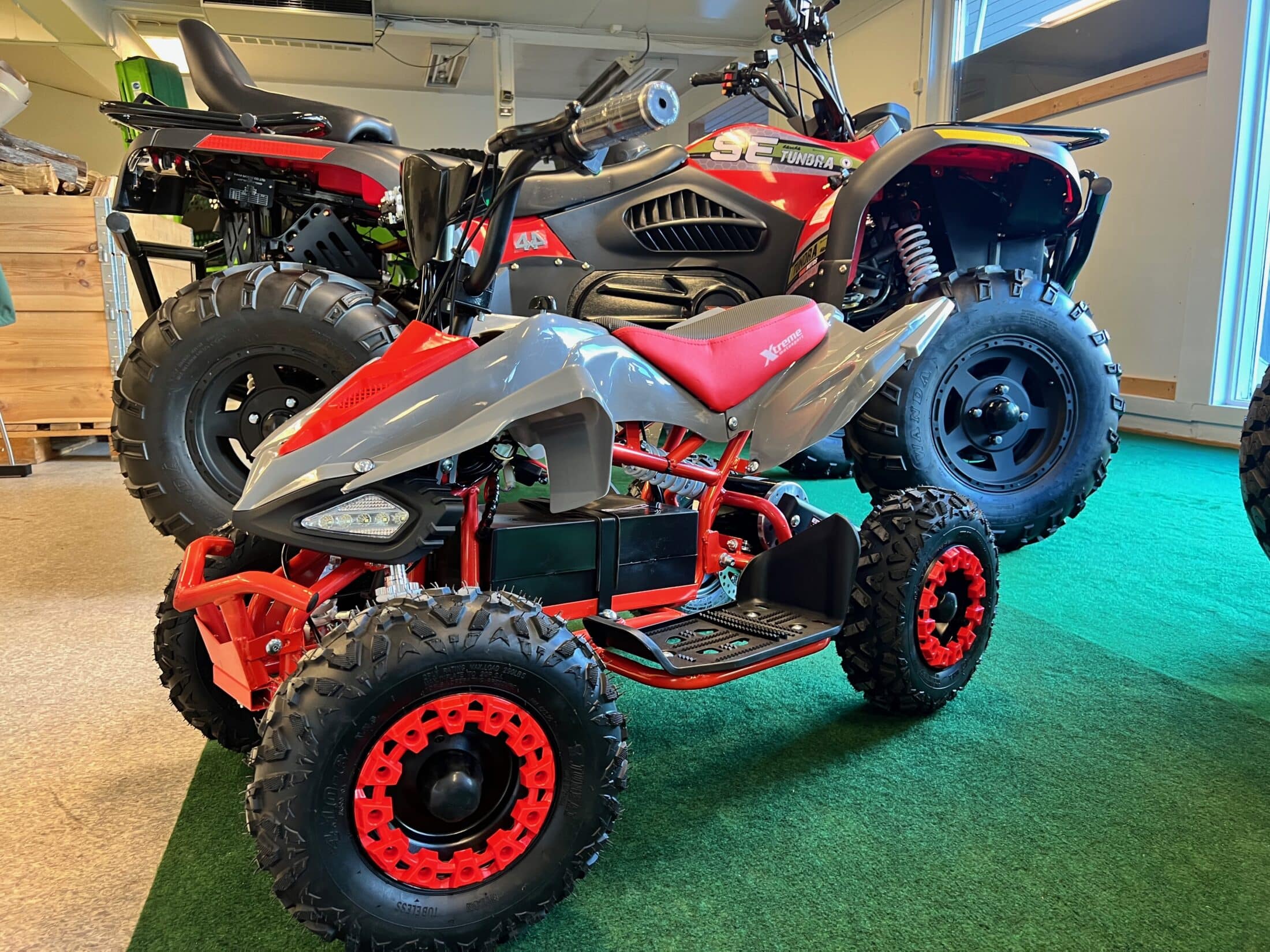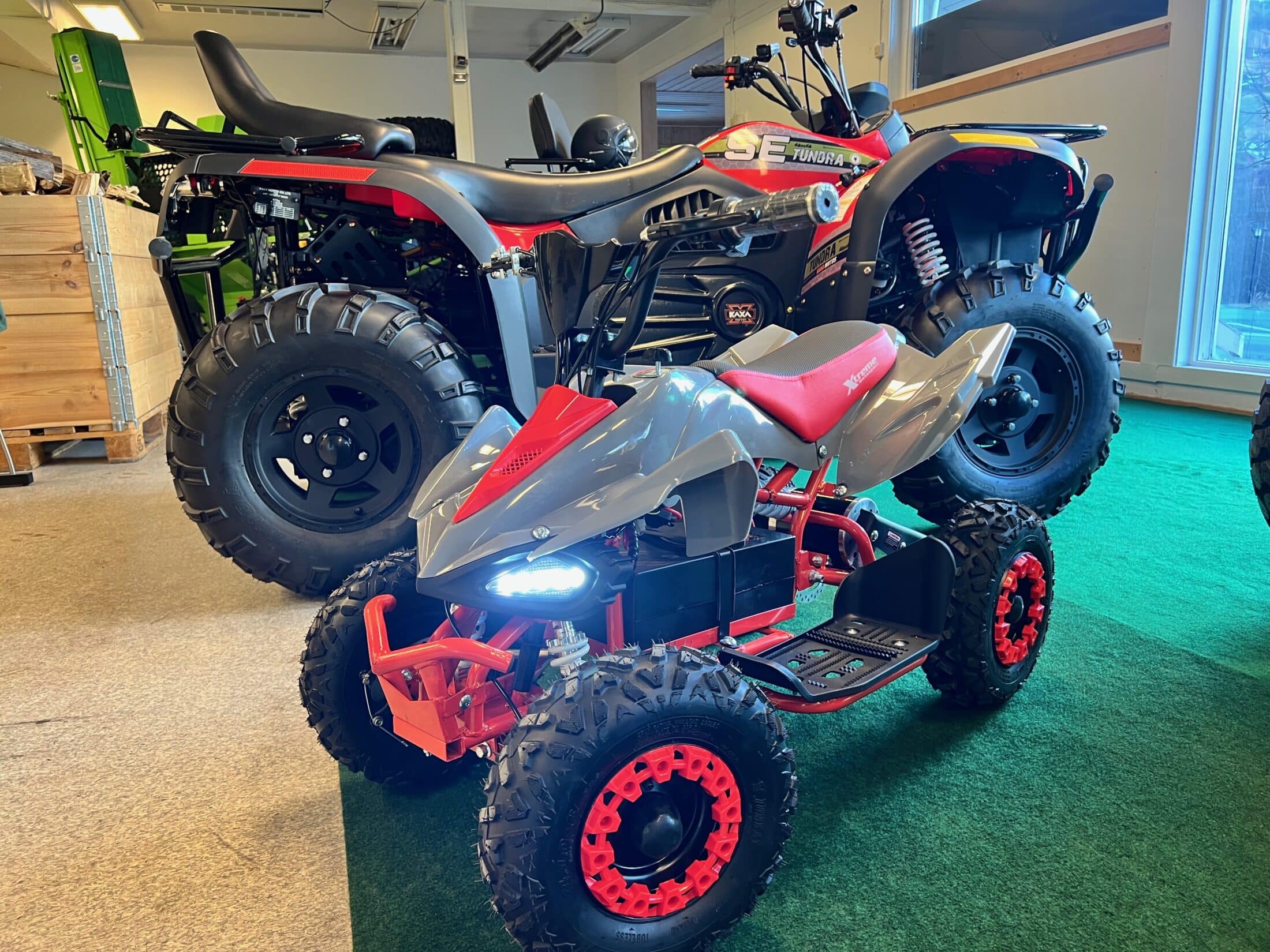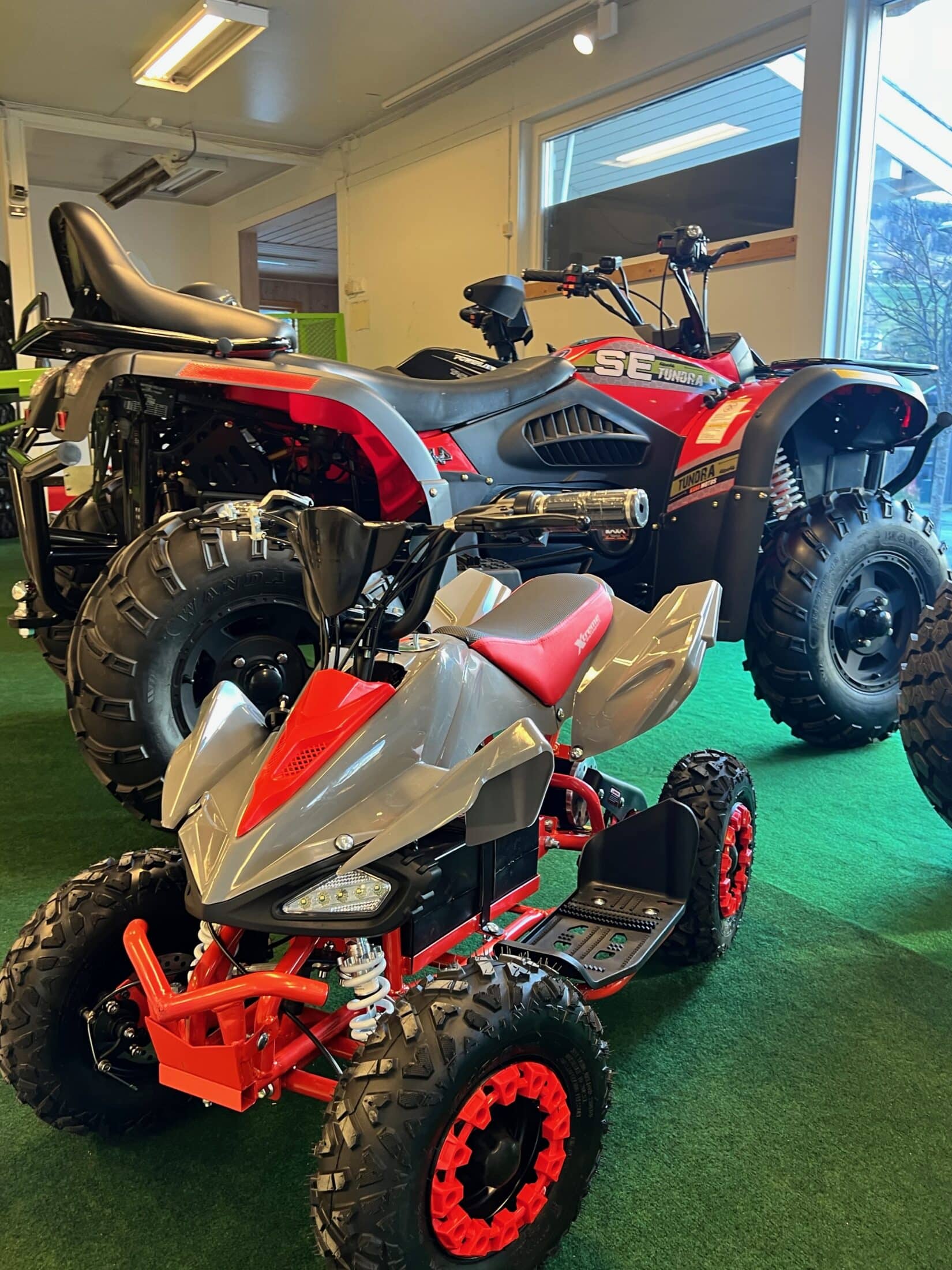 Våre elektriske mini-quads for barn er stillegående, robuste og enkle å håndtere. Med moderne litiumbatteri, justerbar hastighet og solide sikkerhetsfunksjoner får barna en trygg og morsom introduksjon til ATV-kjøring. Perfekt for både hage, gård og små turer i terrenget.